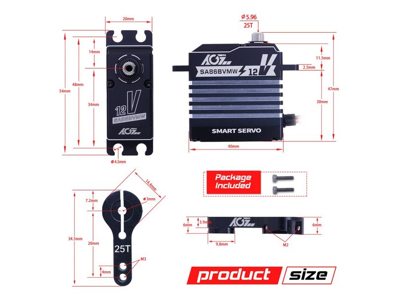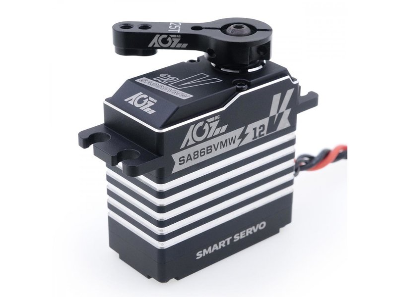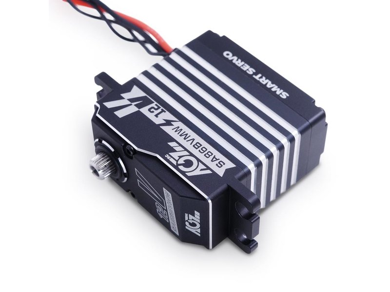 Das AGF-RC SA86BVMW Servo 2-3S Smart Servo ist ein Brushless Servo mit einem Vollaluminiumgehäuse. Das Servo ist HV fähig und kann direkt an einem 2s oder 3s LiPo betrieben werden (4,8 - 14,4V) und ist Wasserdicht nach IP67. Statt eines Potis ist ein verschleißfreier Magnetischer Encoder verbaut.