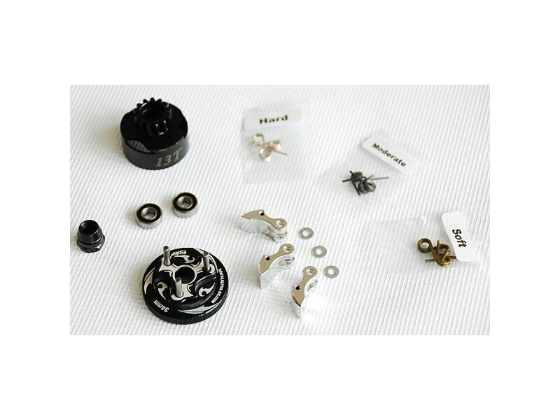 Alpha Plus Alpha Clutch Combo Set (13T Vented Clutch Bell +Bearing 5*10 ( 2pcs) + 34 mm Flywheel(Black) + 3pc Type cluth shoe (Alum) with 3 different springs and washers + Clutch Nut