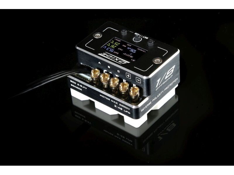 Der Oxide 1/8 von ELCERAM bringt bahnbrechende Innovationen in der Echtzeitüberwachung von Batteriestrom und -entladung sowie intelligente Algorithmen zum Schutz des Reglers. Durch den Einsatz fortschrittlicher Kühltechnologie auf Basis eines Aluminiumoxid-Keramikkühlers bietet Oxide 1/8 eine ausgezeichnete Wärmeleitfähigkeit und kann mit leistungsstarken Motoren bis zu 2300kV verwendet werden. Es bietet revolutionäre Echtzeitüberwachung von Batteriestrom und -entladung sowie innovative intelligente Algorithmen, um den ESC im Falle eines Motorausfalls oder mechanischen Problems zu schützen. Mit Verpolungsschutz und verbesserter Wasser- und Staubbeständigkeit sticht der Regler durch sein mattes TFT-LCD-Farbdisplay hervor, sodass keine weitere Schnittstelle benötigt wird.