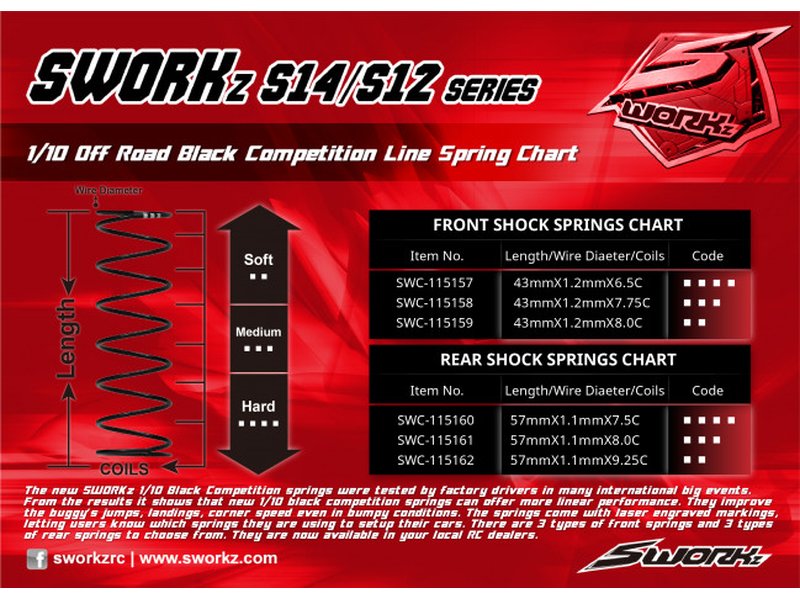 SWORKz 1/10 Black Line Competition Stoßdämpferfeder vorne (S2-Dot)(43X1.2X8.0)(2)