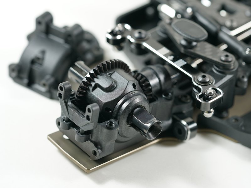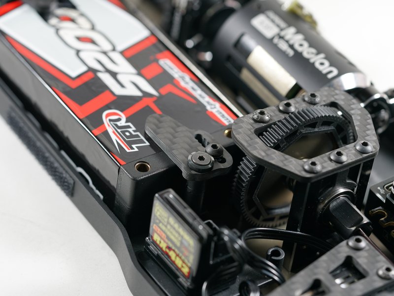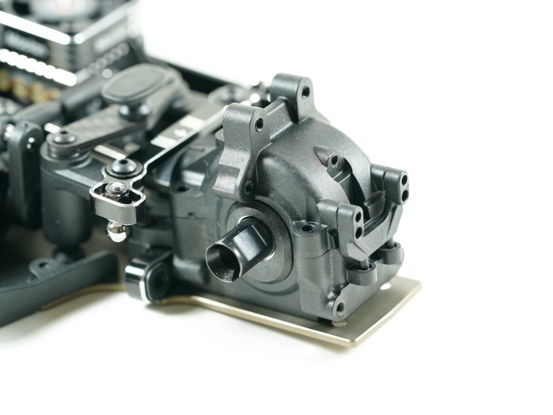 Der S14-4C verfügt über das neue Getriebe mit einstellbarem Diff. System auf einem hart eloxierten und leichteren T7075-Aluminiumchassis. Der Flex des Chassis kann durch unterschiedliche Material-Sideguards verändert werden.